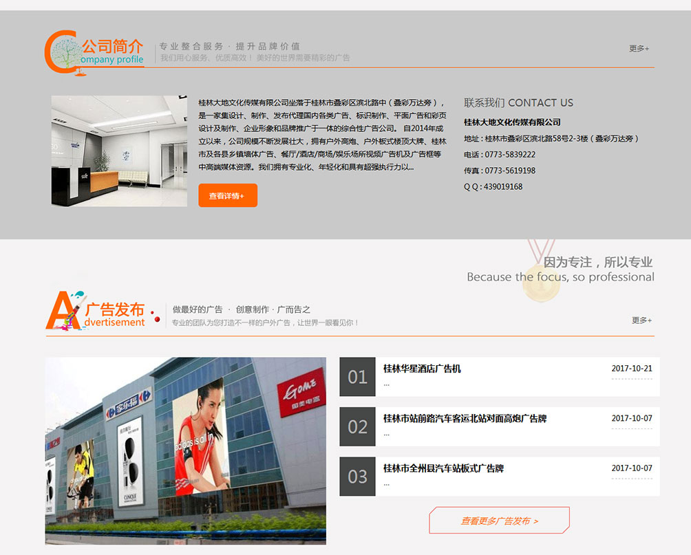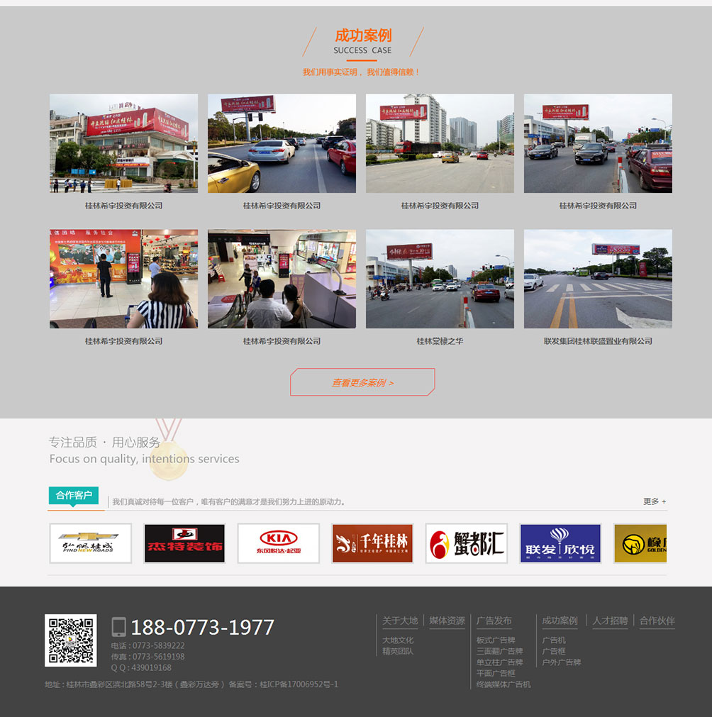 桂林大地文化传媒有限公司坐落于桂林市叠彩区滨北路中(叠彩万达旁),是一家集设计、制作、发布代理国内各类广告、标识制作、平面广告和彩页设计及制作、企业形象和品牌推广于一体的综合性广告公司。